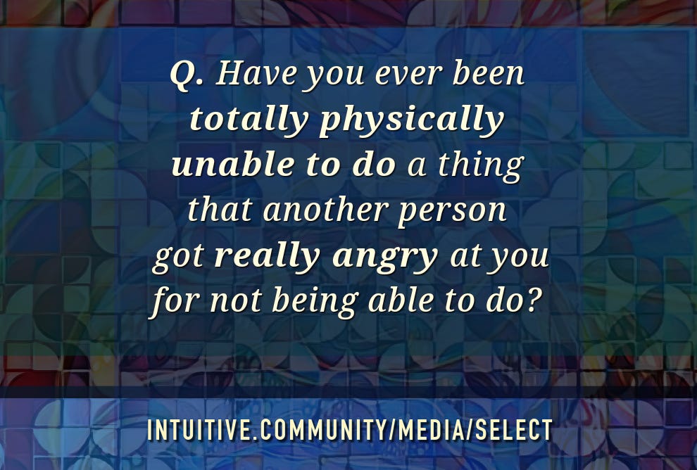 Q. Have you ever been totally physically unable to do a thing that another person got really angry at you for not being able to do?