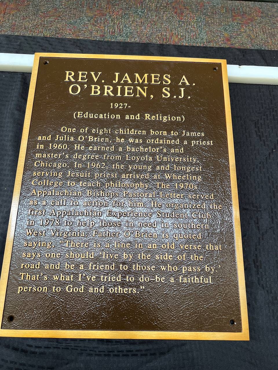 "Information from the Wheeling Hall of Fame states that O’Brien first came to what is now Wheeling University in 1962 as a young Jesuit to teach philosophy. A few years later, he would take an academic leave of absence to complete work on his doctorate at Duquesne University.