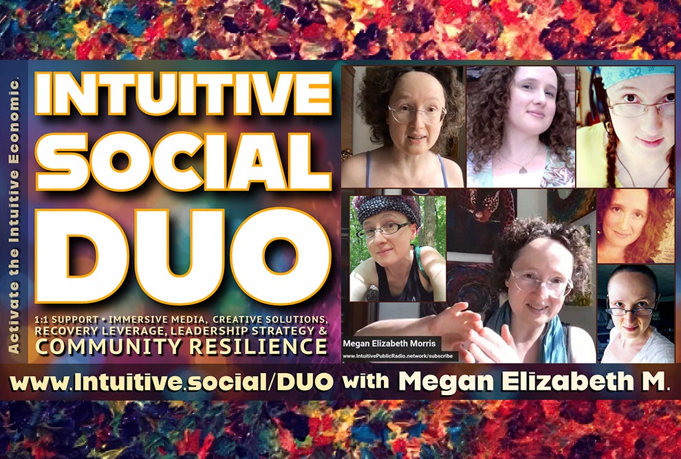 Then reach out to Megan Elizabeth to request information and ask her about how to collaborate directly in Intuitive Social Duo sessions — or be introduced to Intuitive Social Collaborative. She’ll direct you to the options most currently relevant to your needs.