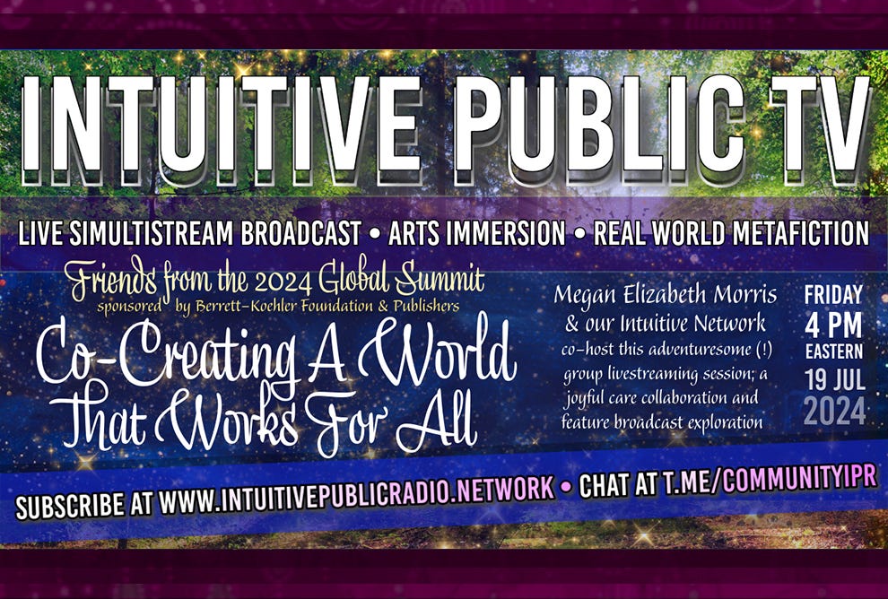 Today from 4-5 PM Eastern we're broadcasting live — our Intuitive Public TV Simultistream to YouTube, Facebook, and LinkedIn — to discuss and celebrate our intriguing adventures through the Co-Creating A World That Works For All 2024 Global Summit sponsored by Berrett-Koehler Foundation & Publishers.